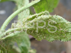 6.蚜虫:为害多种作物,群集在嫩梢、叶片背面刺吸汁液,导致叶片卷曲、畸形。