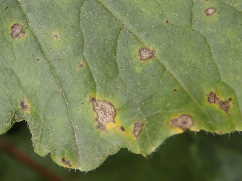 【识别要点】植株叶、茎、花梗、角果和根头部均可受害。 病斑初起出现在叶片背面,初生不规则开、水浸状或油浸状绿色至淡褐色小斑点,直径很小,后变为具有光泽的褐色或黑褐色不规则形或多边形病斑,薄纸状,不突 破叶脉;开始时在外叶发生多,后延及内叶,叶片正面初起为与叶背对应的青色斑块,当坏死斑融合后形成大的不整齐的坏死斑,可达2~100px以 上,后变为淡褐,黑褐色焦枯状;病菌还危害叶脉,致使叶片生长变缓,叶面皱缩,开始外叶发生多,后波及内叶;发病严重时,全株叶片表现为白色灼状斑块,后 变为淡褐色焦枯状,导致植株枯黄而死亡。茎及花梗上病斑椭圆形至线形,水渍状,褐色或黑褐色,有光泽,斑点部分凹陷。角果上产生圆形或不规则形黑褐色斑, 偶成条斑,稍凹陷。根头部初生暗色病斑后变深,渐成黑色,或不规则圆形斑纹。