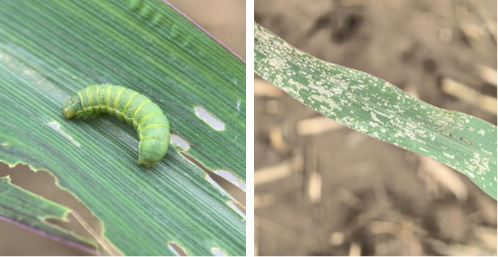 图 3  棉铃虫幼虫及玉米苗期为害状