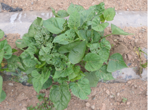 红楔异盲蝽为害甘薯、玉米、苜蓿等作物和多种杂草,为害甘薯时会导致叶片皱缩、破碎。