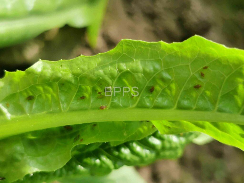 【识别要点】 受蚜虫侵害的叶片会出现褪色、发黄的现象,严重时叶片会卷曲、皱缩,甚至干枯死亡。由于汁液被吸食,莴笋的生长发育受到抑制,植株变得矮小,影响其正常的生长和产量。