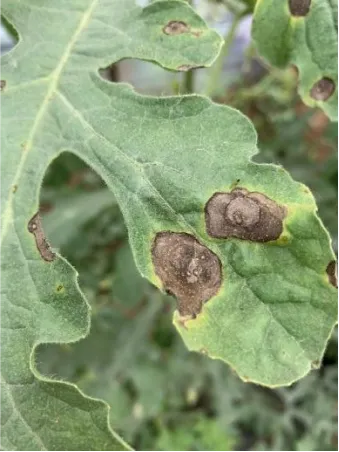 (3)蔓枯病:可选用苯甲·嘧菌酯、氟菌·肟菌酯、氟酰羟·苯甲唑等药剂,喷雾时需重点喷淋茎基部和感病部位。