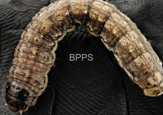 【识别要点】 亚麻夜蛾成虫体长 17-22 毫米,前翅灰褐色,有复杂斑纹,肾状纹和环状纹明显;幼虫体背具彩色纵线,头部淡褐绿色。它以幼虫咬食亚麻叶片、花及蒴果,造成孔洞与缺刻,影响亚麻生长。