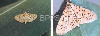 【识别要点】 1至 2 龄的幼虫一般群居在吐丝结成的网幕中,在叶的背面啮食叶肉,残留叶子上表皮及细叶脉,被害叶呈纱窗状,仅个别嫩叶被咬成小洞。