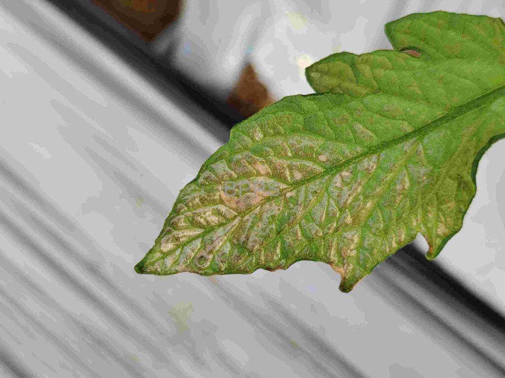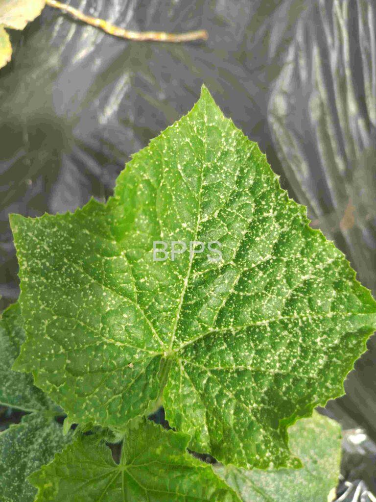 【识别要点】 白点在叶片上通常随机分布,不局限于叶片的特定部位,可能出现在叶片的任何位置,包括叶片边缘、叶尖、叶脉两侧等。白点颜色较浅,多为白色或灰白色,形状多为圆形或不规则形,大小不一,小的如针尖状,大的可能融合成较大的斑块。