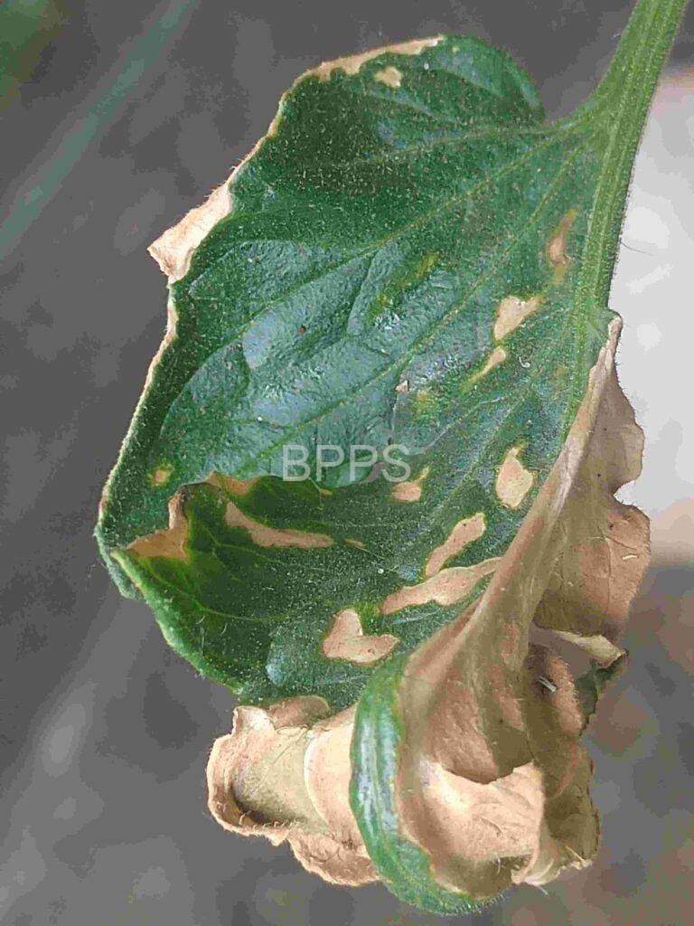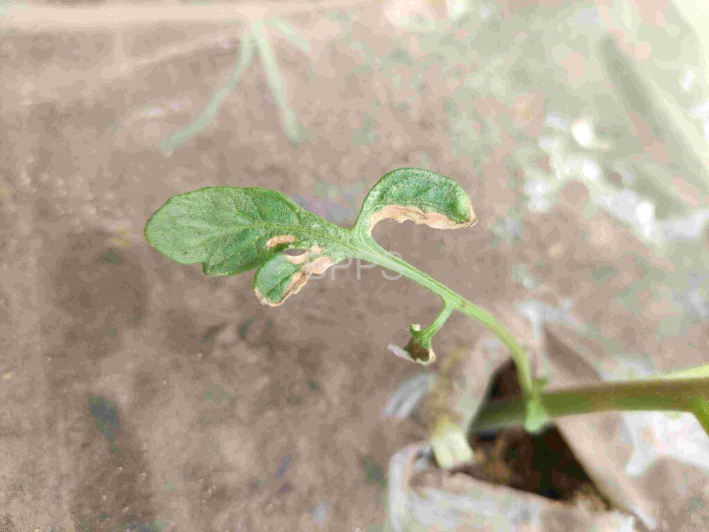 【解决措施】 ①喷水冲洗:用清水冲洗叶片,稀释残留药剂,减轻药害影响。②增施叶面肥:喷施氨基酸肥或生长调节剂,促进植株恢复。③加强管理:改善通风、光照,适当浇水,增强植株抗性。