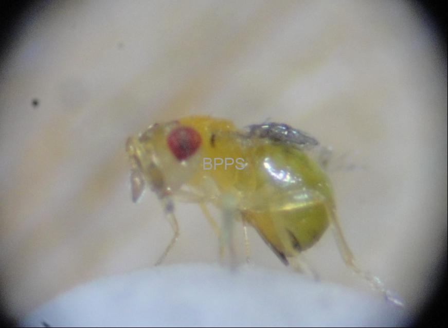 丽蚜小蜂属膜翅目、蚜小蜂科、恩蚜小蜂属,是世界广泛商业化的用于控制温室作物粉虱的寄生蜂。喜取食白粉虱二龄若虫和蛹期;对烟粉虱的若虫期和蛹期取食嗜好性相同。在其12天的预期寿命中平均可杀死95个若虫。产卵偏好于两种粉虱的3、4龄和预蛹期,在这些虫态的寄生率最高。成虫每天可产5粒卵,死亡前其产60粒卵。